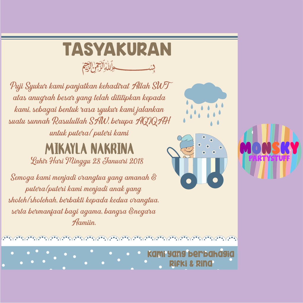 untuk "Ucapan Syukuran Khitanan Anak / Stiker Tasyakuran Khitanan Anak Request Foto Shopee Indonesia : Kartu ucapan syukuran kelahiran aqiqah khitanan."