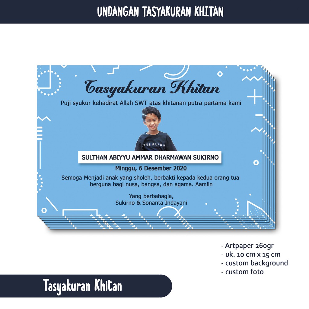 Ucapan Syukuran Khitanan Anak / Stiker Tasyakuran Khitanan Anak Request Foto Shopee Indonesia : Kartu ucapan syukuran kelahiran aqiqah khitanan.. Kartu ucapan khitanan desain lucu ini berukuran kertas a5 21cm x 148cm atau setengah dari ukuran kertas a4 21cm x 297cm dengan tema corak batik mega mendung. Contoh ucapan syukuran khitanan untuk nasi kotak keren contoh ucapan. Bisa digunakan untuk kartu apapun, sesuai dengan keinginan customer. Mohon doa restu agar kehamilan dan kelahiran ini berjalan lancar dan. Membuat desain template ucapan syukuran kelahiran anak syukuran anak buat contoh tulisan, membuat desain template ucapan syukuran kelahiran anak ardiyansyah com sudah menjadi tradisi bagi keluarga yang dikarunia kelahiran seorang anak mengadakan syukuran dengan mengundang.